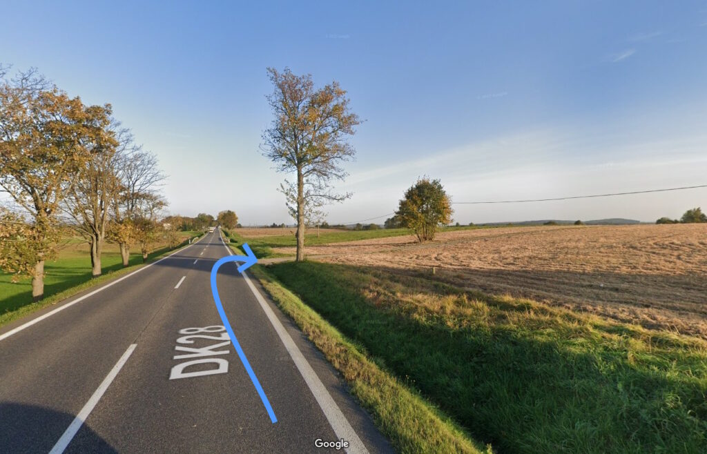 Jadąc drogą krajową DK 28 od strony Jasła, Warzyc – skręć w prawo na 216 km, za słupkiem nr 5
